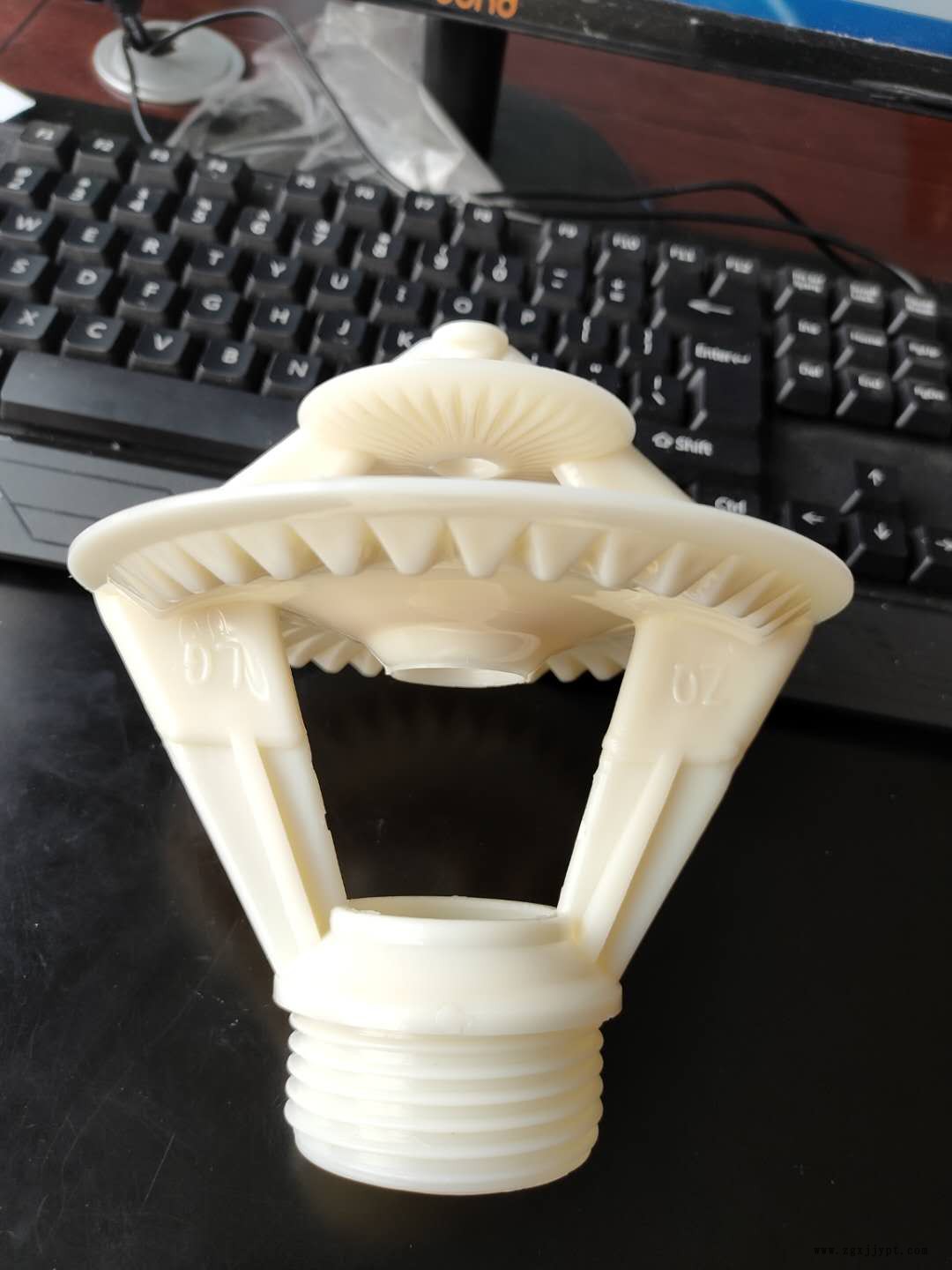 我公司生產(chǎn)各種規(guī)格、樣式ABS噴頭,質(zhì)優(yōu)價(jià)廉現(xiàn)貨供應(yīng)。冷卻塔ABS噴頭 三濺式噴頭 反射型(Ⅱ、Ⅲ)噴頭、無(wú)填料噴頭,脫硫塔噴頭、霧化噴頭、 冷卻塔配件、噴頭、冷卻塔布水器噴嘴等。具有與配水管相連的承插式接口,承插接口采用鉆尾絲固定,在承插接口的下部還依次同軸間隔設(shè)置有外徑依次變小的大濺水盤、小濺水盤和錐形辟水頭;并且由至少兩支圓周排列立式設(shè)置的連桿固定在承插接口上,在大濺水盤和小濺水盤上還分別設(shè)置有與錐形管嘴同軸且與錐形管嘴下口內(nèi)徑相比內(nèi)徑依次變小的大漏水孔和小漏水孔,大濺水盤和小濺水盤為弧面朝上的半球形,錐形辟水頭為錐角向上的錐形。特點(diǎn): 改進(jìn)型噴濺裝置的工作原理是:壓力水沿切向水平進(jìn)入蝸型噴頭,在腔體內(nèi)旋轉(zhuǎn)并向下作回旋運(yùn)動(dòng),從下方噴嘴噴出。水噴出后形成一傘狀旋轉(zhuǎn)水體,沖擊濺水條及濺水葉片,濺散成均勻分布霧狀細(xì)小水滴,下落到填料頂面。噴頭材質(zhì)為ABS塑料一次注塑成型,強(qiáng)度高使用壽命長(zhǎng)。該噴頭布水均勻,工作水壓低(噴頭出口工作壓力僅為0.6mH2O),壓力適應(yīng)范圍大,不易堵塞。由于其帶有經(jīng)特殊設(shè)計(jì)的鎖緊防松裝置,可使其與布水管連接牢固,不脫落,可保證配水系統(tǒng)長(zhǎng)期安全運(yùn)行。正常使用條件下,噴頭使用壽命20年。散熱效果好,特別適用于電廠冷卻水。