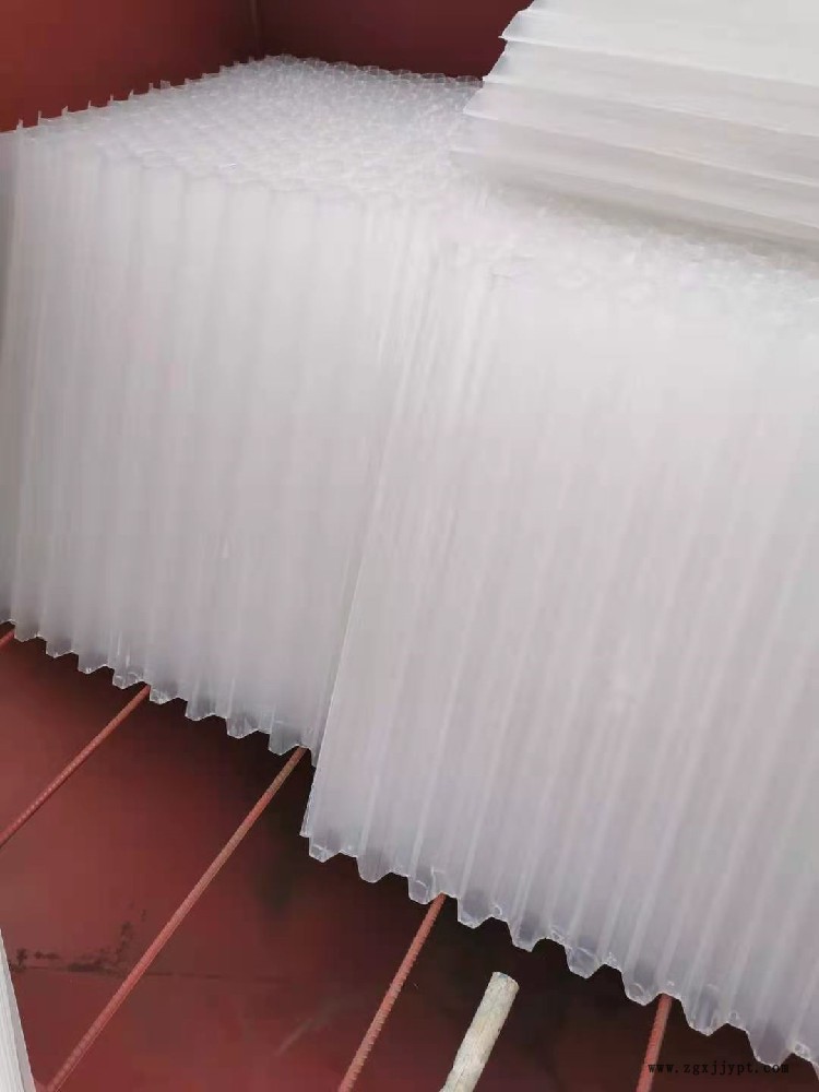 蜂窩斜管填料材質(zhì)有聚丙烯(pp)聚氯乙烯(PVC)和玻璃鋼(FRP)三種。組裝形式有斜管和直管兩種。