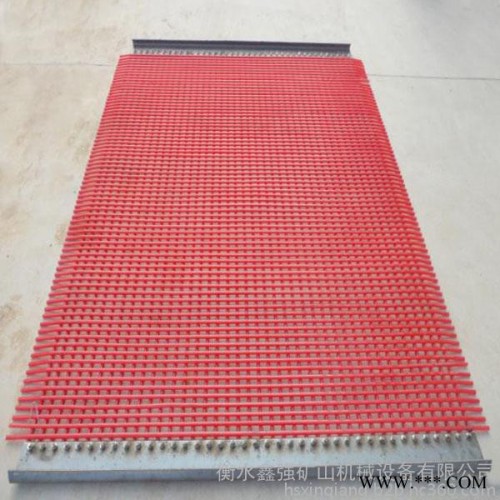 1、耐磨性能好,使用壽命長,其耐磨性為鋼制篩板的3~5倍,為普通橡膠篩板的5倍以上。 2、維修工作量小,聚氨酯篩板不易損壞,使用壽命長,因此可以大大降低維修量和停產(chǎn)檢修損失。 3、總成本低,盡管同一規(guī)格(面積)的聚氨酯篩板比不銹鋼篩板一次性投資高(約2倍),但由于聚氨酯篩板壽命是不銹鋼篩板的3~5倍,而且維修和更換次數(shù)少,所以總成本并不高,經(jīng)濟上也是很合算的。 4、耐濕性能好,可在水為介質(zhì)的條件下工作,且在水、油等介質(zhì)的情況下,聚氨酯與物料的摩擦系數(shù)降低,更利于透篩,提高篩分效率,并可避免潮濕微粒的粘附,同時因磨擦系數(shù)降低,磨損減少,使用壽命提高。 5、耐腐蝕,不易燃,無毒無味。 6、由于篩孔設(shè)計合理,篩板制造工藝獨特,極限尺寸的顆粒不會阻塞篩孔。 7、吸振性能好,消聲能力強,可減少噪音,并可使篩上物在振動的過程中不易破碎。 8、由于聚氨酯二次振動的特點,聚氨酯篩板具有自清理作用,因此篩分效率高。 9、節(jié)能降耗,聚氨酯比重小,比同樣大小鋼篩重量輕得多,從而減輕了篩機負荷,節(jié)約電耗,并可延長篩機壽命。