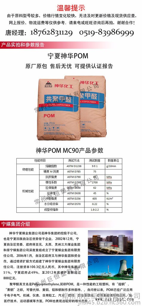 常州市巨恒塑料有限公司是神華pom的一級代理,我公司實(shí)力雄厚,重信用、守合同,以保證產(chǎn)品質(zhì)量和薄利多銷的原則,贏得了廣大客戶的信任,建立了長期的合作關(guān)系。在消費(fèi)者當(dāng)中享有較高的地位。