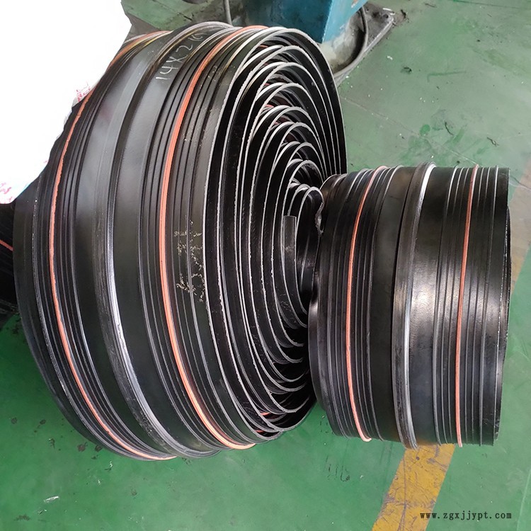 遇水膨脹橡膠止水帶具有普通橡膠止水帶的性能外,其主要特點(diǎn)是內(nèi)防水線采用了具有遇水膨