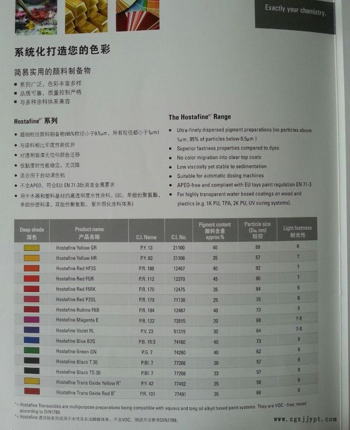 1.不含樹脂和水性顏料制備物,業(yè)內(nèi)公認的乳膠漆著色產(chǎn)品。