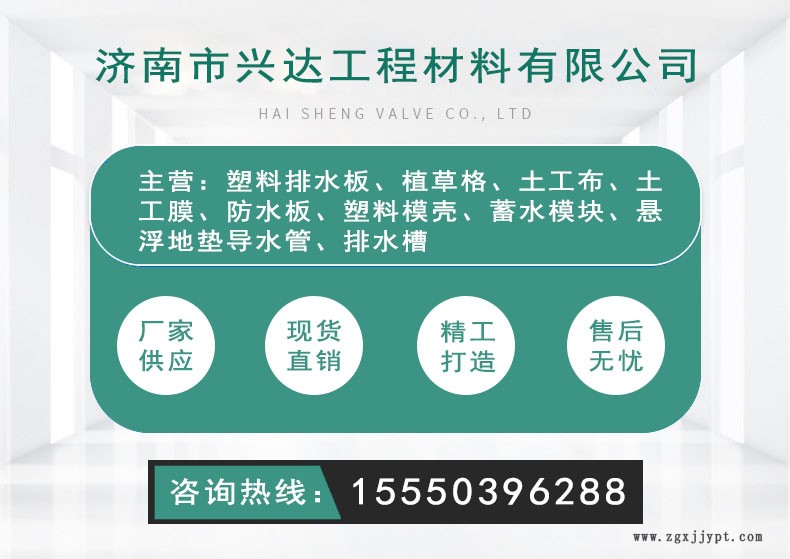濟(jì)南市興達(dá)工程材料有限公司 經(jīng)營:排水板,PVC·排水板,蓄排水板,HDPE排水板,植草格,生態(tài)袋,土工布,土工網(wǎng),聯(lián)系方式:155-5039-6288