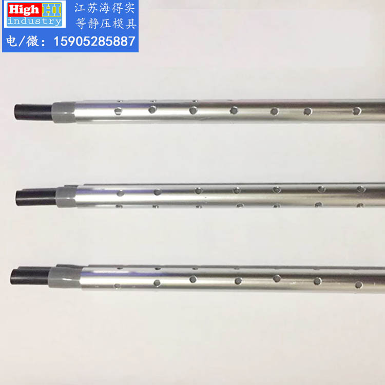 等靜壓成型中,將需要壓制的樣機放置于高壓容器中,壓力通過液體傳壓介質均勻地傳遞壓力,從各個方向多樣件進行加壓,從而使工件成型,達到預期的效果。在這個壓制過程中,工件是需要與傳壓介質隔離的,不能與傳壓介質(液壓油)進行接觸以造成互相污染。這**需要能夠滿足液壓工作的等靜壓模具(膠套)。