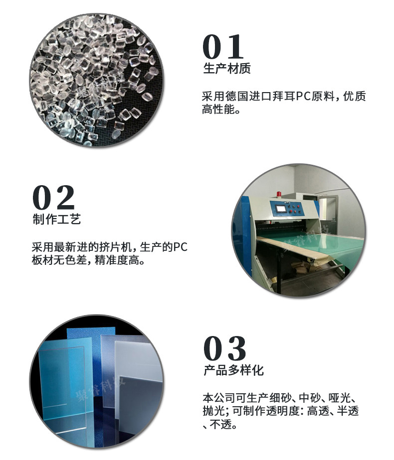 | 聚碳酸酯PC板材系列: 通用系列陽光板、大型建筑采光系列陽光板、幕墻系列中空板、燈具專用PC擴(kuò)散板系列 、航空高鐵專用PC板系列、PC隔音降噪專用板系列、光學(xué)級(jí)PC薄片、銘板印刷級(jí)PC薄片、V0級(jí)阻燃PC薄片、無鹵阻燃PC薄片 、絕緣PC薄片 。 | |