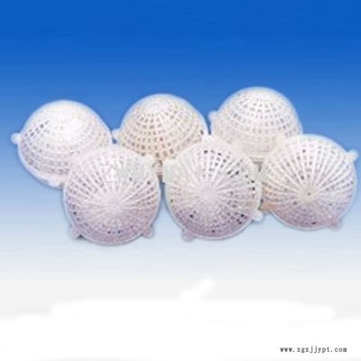 | 多孔生物懸浮球填料是目前國內(nèi)污水處理系統(tǒng)生物膜法填料中研發(fā)的新產(chǎn)品。 該填料是用聚乙烯或聚丙烯材料注塑而成的圓形球體,分內(nèi)外雙層,外部為中空魚網(wǎng)狀球體,內(nèi)部為多扇立體式球體或塑料絲。該產(chǎn)品具有全立體結(jié)構(gòu),直接投放,無需固定;比表面積大,易掛膜,不堵塞;全塑結(jié)構(gòu)具有好氧功能,微生物易生成、易更換、耐酸堿、抗老化,不受水流影響,使用壽命長,剩余污泥極少,安裝方便。 廣泛使用與生活污水處理,石油化工,輕工造紙,食品工業(yè),釀酒,制糖,印染,制革,制藥等工業(yè)廢水處理。 規(guī)格分為:80mm、100mm、150mm 多孔生物懸浮球填料主要技術(shù)參數(shù): | 結(jié)構(gòu)型式 | 規(guī)格 (mm) | 耐酸堿性 | 連續(xù)耐熱 (℃) | 脆化溫度 (℃) | 比表面積 (m2/m3) | 孔隙率 (%) | 材料比重 | 只數(shù)/m3 | | 雙層球型 | 150 | 穩(wěn)定 | 80-90 | -10 | 380 | ≥97 | 0.92 | 350 | | 球型填料 | 100 | 穩(wěn)定 | 80-90 | -10 | 700 | ≥96 | 0.92 | 1000 | | 球型填料 | 80 | 穩(wěn)定 | 80-90 | -10 | 800 | ≥95 | 0.92 | 2000 | |