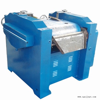 該機(jī)通過轉(zhuǎn)動手輪調(diào)節(jié)水平方向的三根輥筒之間的間隙及輥筒表面相互擠扎和不同速度摩擦達(dá)到研磨分散的效果.