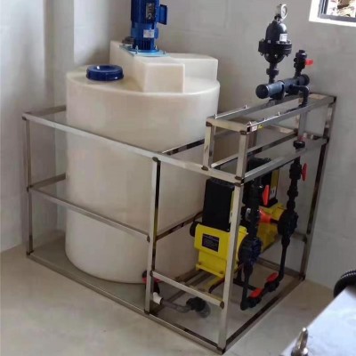 加藥裝置主要由溶液箱攪拌箱(帶攪拌器)使液體、氣體介質(zhì)強(qiáng)迫對(duì)流并均勻混合的器件。攪拌器的類(lèi)型、尺寸及轉(zhuǎn)速,對(duì)攪拌功率在總體流動(dòng)和湍流脈動(dòng)之間的分配都有影響一般說(shuō)來(lái),渦輪式攪拌器的功率分配對(duì)脈動(dòng)有利,而旋槳式攪拌器對(duì)總體流動(dòng)有利。對(duì)于同一類(lèi)型的攪拌器來(lái)說(shuō),在功率消耗相同的條件下,大直徑低轉(zhuǎn)速的攪拌器功率主要消耗于總體流動(dòng),攪拌電機(jī),減速器,攪拌桿,攪拌葉片,計(jì)量泵、液位計(jì)、電控柜、管路閥門(mén)止回閥、壓力表過(guò)濾器、底座、扶梯等組成(可根據(jù)用戶(hù)實(shí)際要求配置)