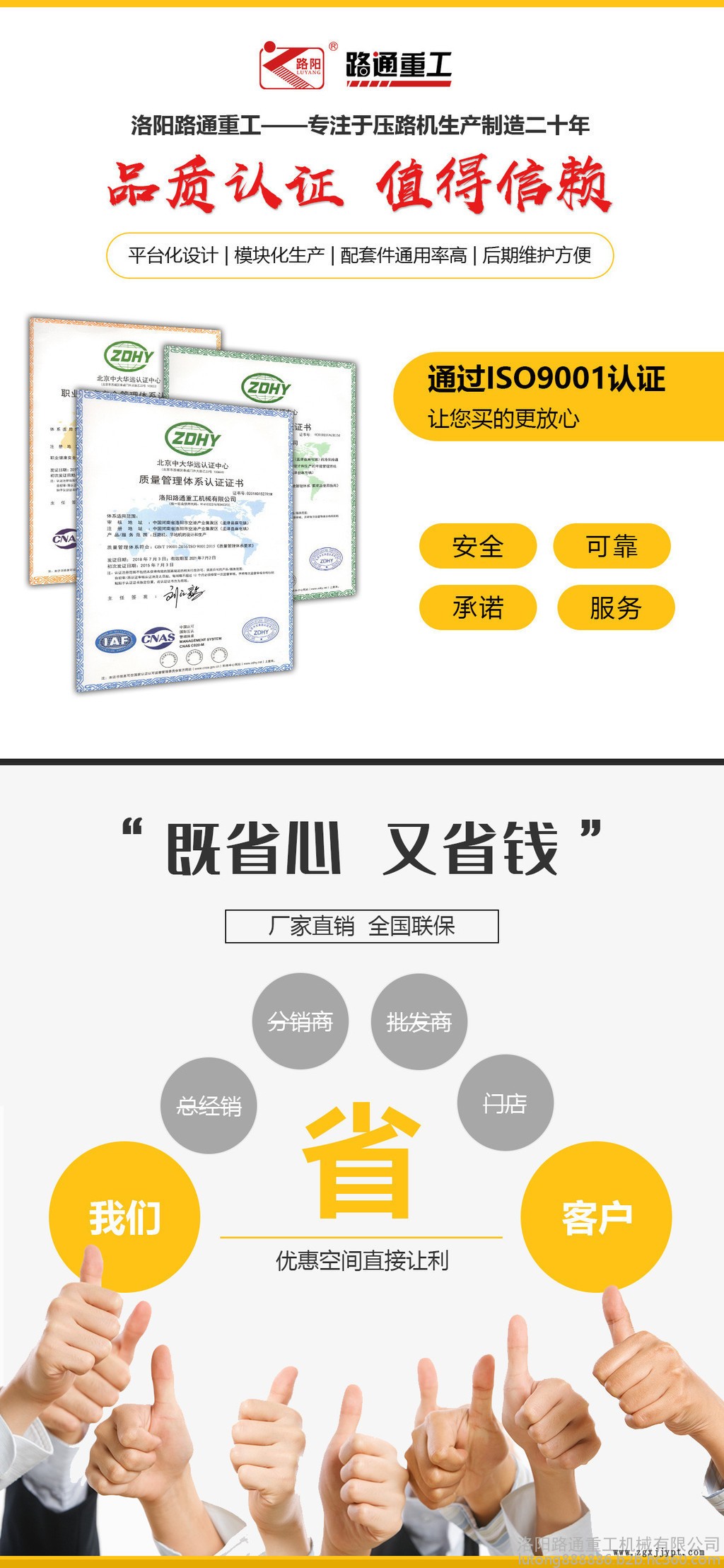 洛陽路通重工機(jī)械有限公司嚴(yán)格按照ISO9001質(zhì)量認(rèn)證體系運(yùn)行,一直堅(jiān)持以質(zhì)量求生存,以管理求效益,以信譽(yù)求發(fā)展的經(jīng)營方針。公司重合同守信譽(yù),以靠譜的質(zhì)量、用心的服務(wù)獲得了良好的聲譽(yù),多次被評(píng)為省市“明星企業(yè)”、“重質(zhì)量、守信用企業(yè)”。產(chǎn)品開發(fā)中心技術(shù)力量雄厚,具有壓路機(jī)、平地機(jī)、裝載機(jī)、挖機(jī)等系列工程機(jī)械和拖拉機(jī)等農(nóng)業(yè)機(jī)械的開發(fā)研制能力。