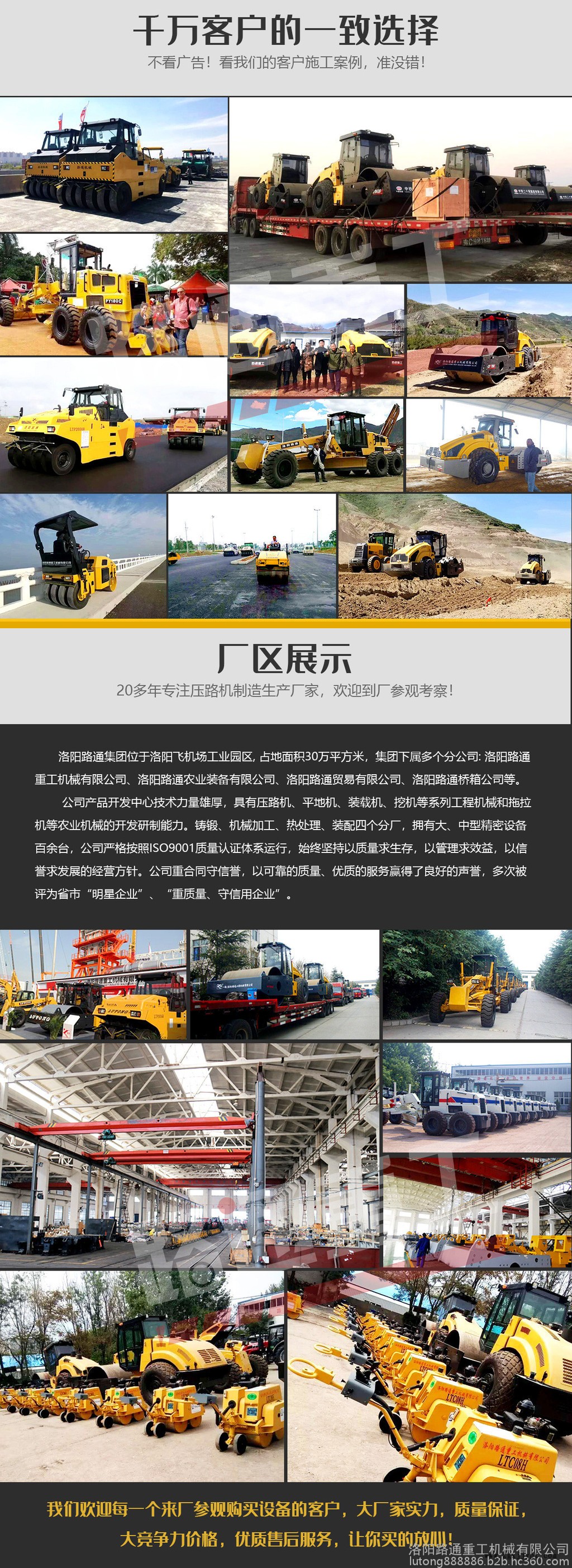 洛陽(yáng)路通重工機(jī)械有限公司嚴(yán)格按照ISO9001質(zhì)量認(rèn)證體系運(yùn)行,一直堅(jiān)持以質(zhì)量求生存,以管理求效益,以信譽(yù)求發(fā)展的經(jīng)營(yíng)方針。公司重合同守信譽(yù),以靠譜的質(zhì)量、用心的服務(wù)獲得了良好的聲譽(yù),多次被評(píng)為省市“明星企業(yè)”、“重質(zhì)量、守信用企業(yè)”。產(chǎn)品開(kāi)發(fā)中心技術(shù)力量雄厚,具有壓路機(jī)、平地機(jī)、裝載機(jī)、挖機(jī)等系列工程機(jī)械和拖拉機(jī)等農(nóng)業(yè)機(jī)械的開(kāi)發(fā)研制能力。