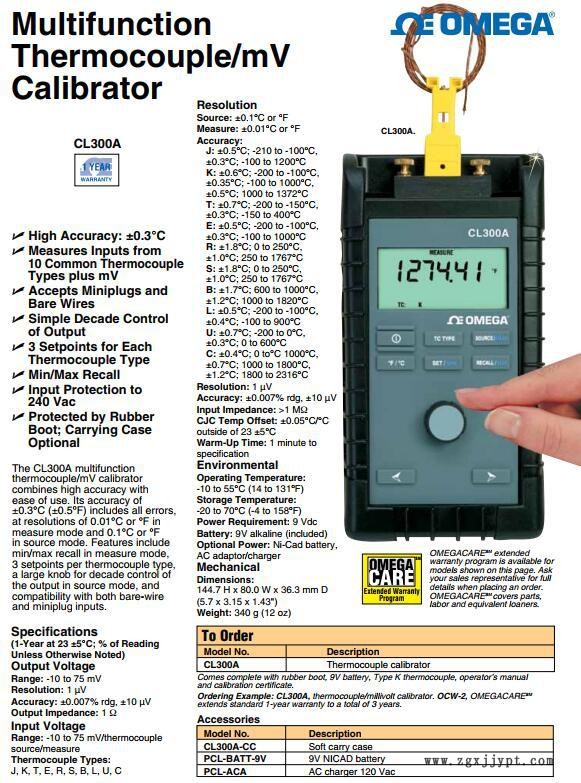 美國OMEGA歐米茄CL300A多功能熱電偶校準(zhǔn)器PCL-ACA_PCL422A-BATT