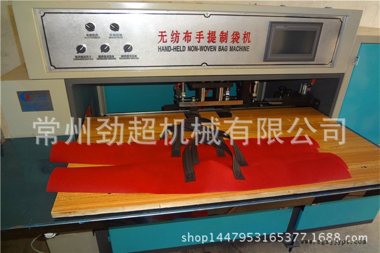 無紡布袋手挽焊接專用機(jī)利用超聲波焊接原理將各式手袋的手腕帶不需任何輔料焊接到手袋上,運用氣動裝置,踩下開關(guān)迅速焊接,焊接點美觀,結(jié)實牢固,并可以根據(jù)客戶要求設(shè)計各種樣式的焊接暗紋。焊接的寬度在模具長度的范圍內(nèi)可以自由調(diào)節(jié),帶的長度可以自由設(shè)定,無需預(yù)熱,開機(jī)即可以工作,工作效率高。 雙人操作,大大提高工作效率,節(jié)省勞動開支。