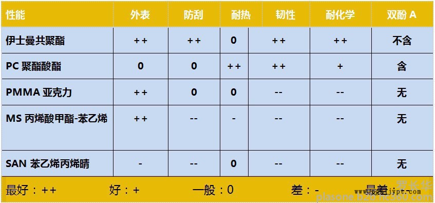 伊士曼化學(xué)Tritan與其他相類(lèi)似的工程塑料比較