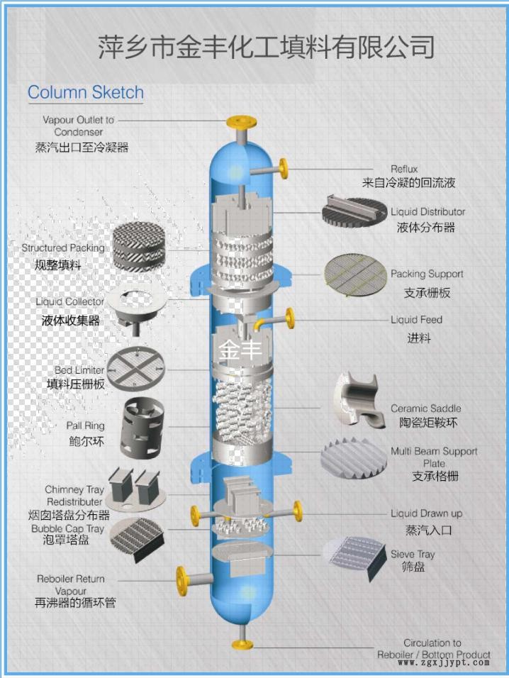 | 聚丙烯鮑爾環(huán)填料是一種高徑相等的開孔環(huán)型填料,每層窗孔有5個舌葉,每個舌葉內(nèi)彎指向環(huán)心,上下兩層窗孔的位置相反錯開,一般開孔面積約占環(huán)壁總面積的30%左右。具有空隙率大,壓降和傳質(zhì)單元高度低,泛點(diǎn)高、汽液接觸充分、比重小、傳質(zhì)效率高等特點(diǎn)。