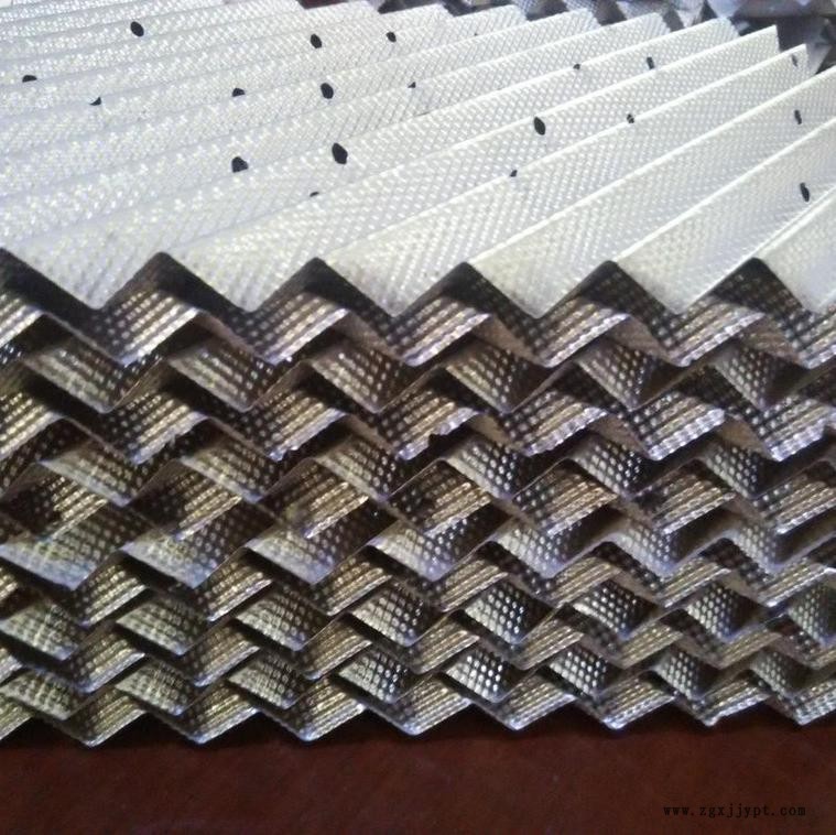 該填料的波紋板片上沖壓有許多Φ5mm左右的小孔,可起到粗分配板片上的液體、加強橫向混合的作用。波紋板片上軋成細小溝紋,可起到細分配板片上的液體、增強表面潤濕性能的作用。金屬孔板波紋填料強度高,耐腐蝕性強,特別適用于大直徑塔及氣液負荷較大的場合。