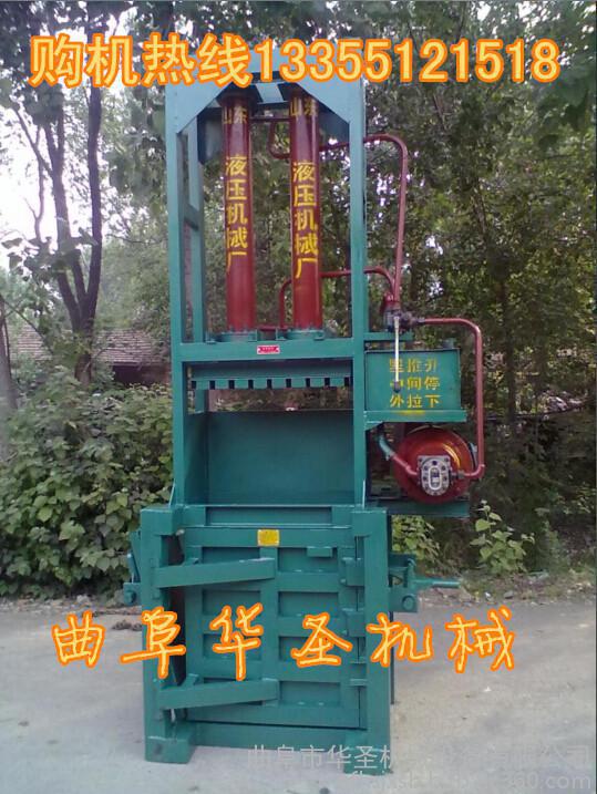 液壓打包機(jī)包括支架,支架帶有底板和前后側(cè)擋板,支架上安裝有千斤頂,千斤頂帶有活塞桿,活塞桿右端連接有豎直的推料板,推料板右側(cè)面連接有推料板條,相鄰?fù)屏习鍡l之間的空隙為板上穿繩槽;支架上面右部帶有壓料上擋板,壓料上擋板左側(cè)的支架上面帶有進(jìn)料口;