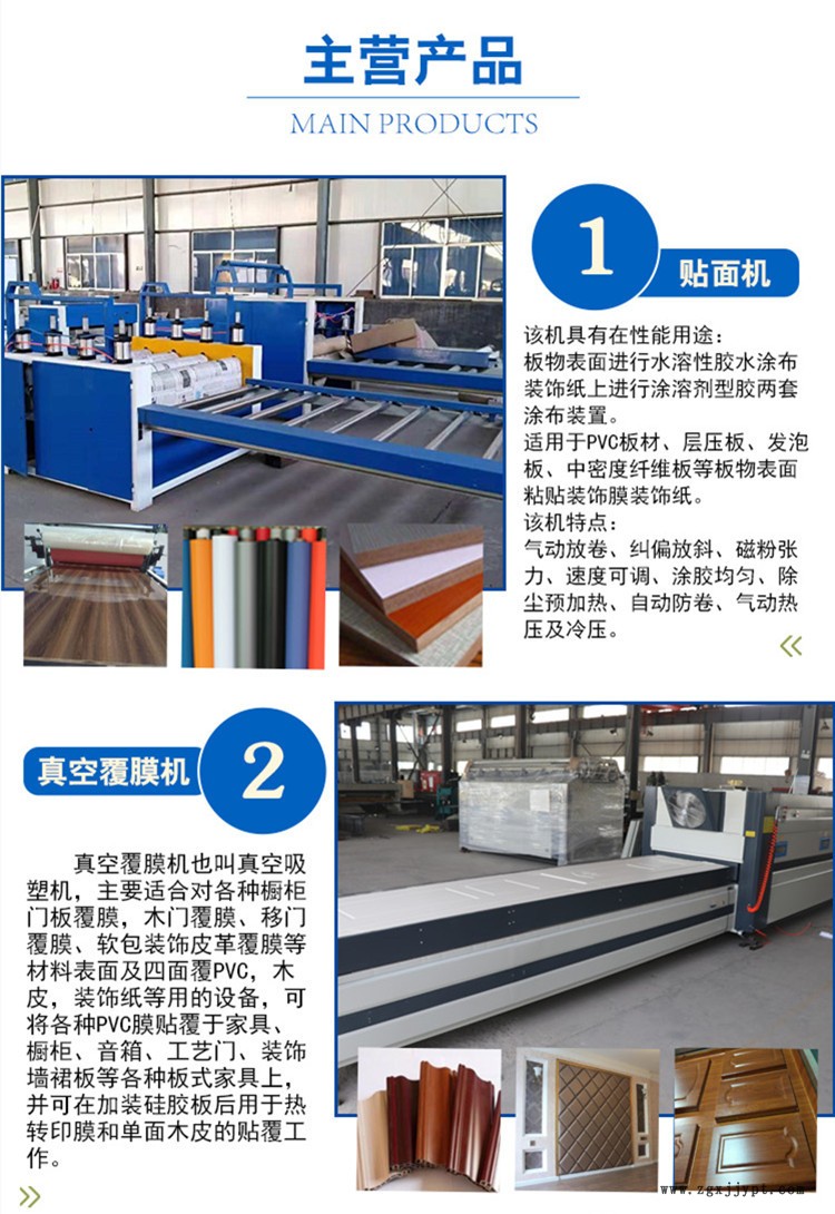 軟包裝飾皮革覆膜等材料表面及四面覆PVC,木皮,裝飾紙等用的設(shè)備,可將各種PVC膜貼覆于家具、櫥柜、音箱、工藝門(mén)、裝飾墻裙板等各種板式家具上,并可在加裝硅膠板后用于熱轉(zhuǎn)印膜和單面木皮的貼覆工作。該設(shè)備是我廠自行設(shè)計(jì)、生產(chǎn)的新型曲面壓膜機(jī)械,采用遠(yuǎn)紅外加熱及真空吸覆貼面技術(shù),可快速貼覆PVC木紋裝飾片,無(wú)論平面、曲面、造型較多、結(jié)構(gòu)復(fù)雜的異型構(gòu)件均能一次完成表面、側(cè)面的貼合。貼面后的產(chǎn)品飾面高雅,圖案豐富、表面無(wú)色差、光潔度高、防水防潮、黏結(jié)牢固,貼面后無(wú)需油漆而又光滑亮麗,既消除了油漆中有害物質(zhì)對(duì)人體和環(huán)境的污染,也節(jié)約了油漆成本和人工,更縮短了生產(chǎn)工期,使產(chǎn)品真正成為健康舒適的新型綠色環(huán)保裝飾材料。