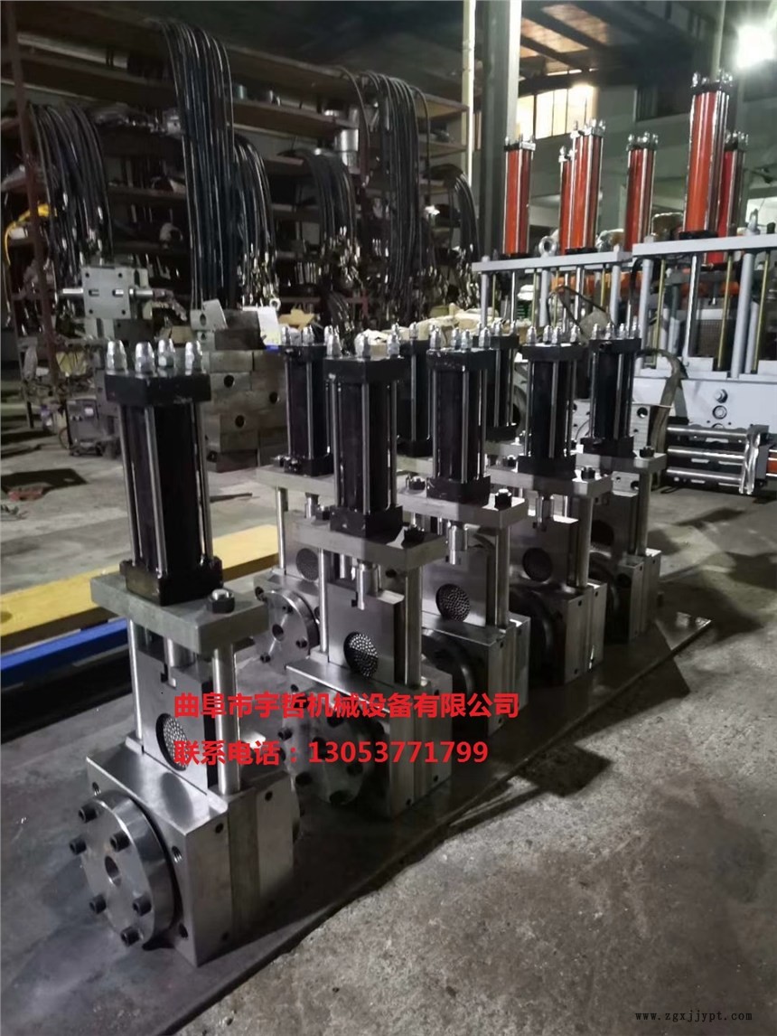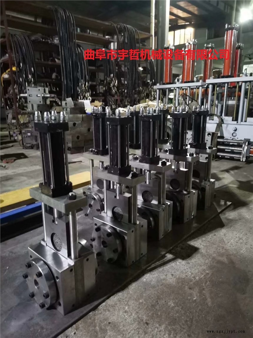 液壓換網(wǎng)模頭,采用優(yōu)質(zhì)合金鋼經(jīng)鍛、銑、磨、鉆線切割加工和多級(jí)調(diào)質(zhì)、氮化增硬處理,具有精密度高、材質(zhì)超硬和超強(qiáng)耐磨的特性,保證在極大夾緊力和摩擦滑動(dòng)條件下的長(zhǎng)期可靠運(yùn)行而不漏料,換網(wǎng)器設(shè)計(jì)為高效內(nèi)置芯棒加熱,采用高速高壓油缸驅(qū)動(dòng)過換網(wǎng),由大流量的液壓站間提供…