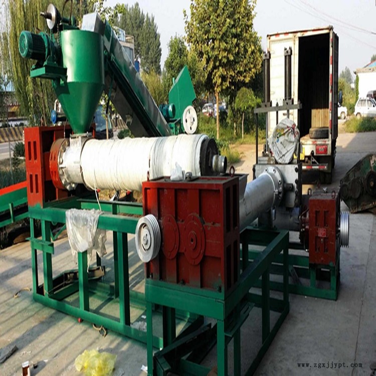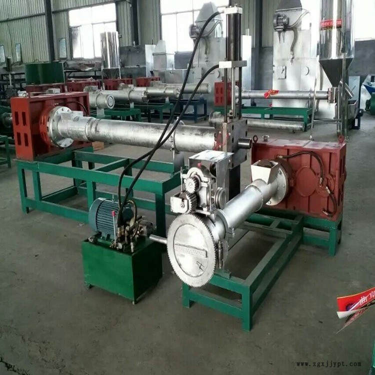 帶水廢舊塑料在制造成品顆粒后表面光潔度更高,經(jīng)過階梯式的兩次排氣后顆粒的含孔率更低,產(chǎn)量也較同型機(jī)組高出左右。主機(jī)加裝液壓換網(wǎng)模頭后機(jī)組可以做到不停機(jī)、不斷條、不用人工、沒有機(jī)頭下角料可以持續(xù)使用等優(yōu)點(diǎn)