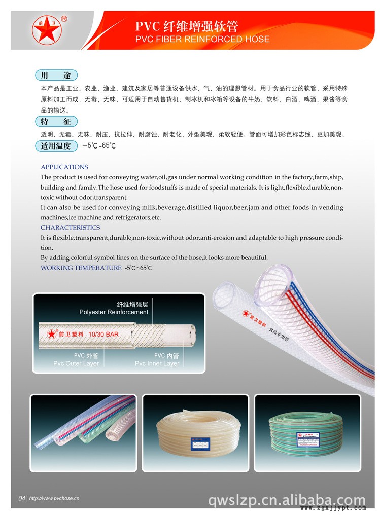 PVC鋼絲增強軟管(抽沙管,抽油管,排水管,吸水管,真空管,螺旋管,鋼絲管)、纖維增強軟管(增強管,網(wǎng)管),透明軟管(透明單管,流體管),花園管,衛(wèi)浴管,高壓管(空氣管,氣路管),煤氣管,防靜電軟管等各種PVC軟管。