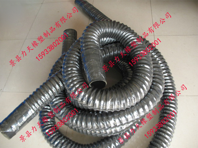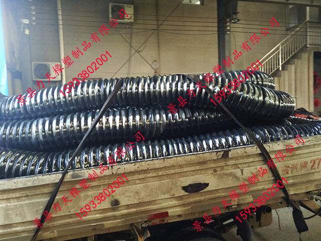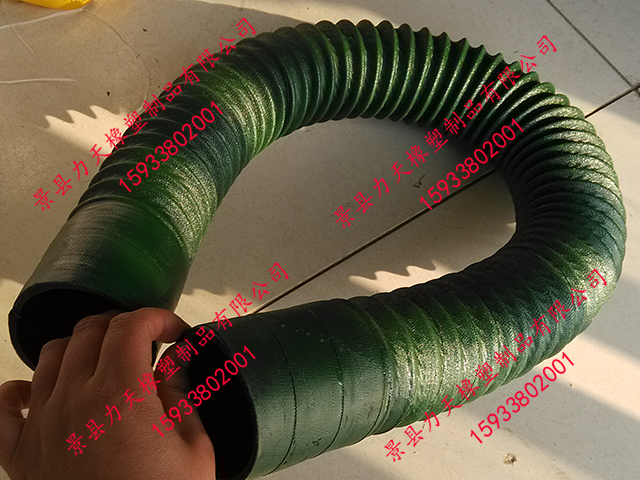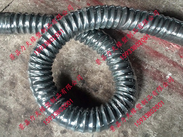 很榮幸為您推薦力天橡塑生產(chǎn)的橡膠風(fēng)管,其比一般橡膠軟管更小的彎曲半徑,內(nèi)置有螺旋鋼絲骨架,可以耐真空,在輸送易燃粉塵時(shí)可內(nèi)置導(dǎo)靜電銅線,及時(shí)排出靜電。其與市場的同種用途的PVC風(fēng)管相比具有更好的耐老化性能和耐磨性能,因此具有更長的使用壽命。