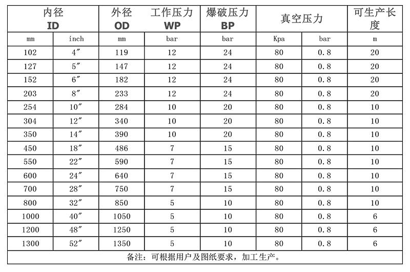 產(chǎn)品結(jié)構(gòu):DN1200抗彎曲鋼絲橡膠管|抗彎曲鋼絲橡膠管在線咨詢一般采用整體硫化的方式使法蘭和管體相連,當(dāng)工作壓力增大時(shí)可采用扣壓式連接。膠層,真正對(duì)管路起減振降噪和位移補(bǔ)償作用的是肘形橡膠軟管。因此,肘形撓性接管的整體性能的好壞主要由肘形橡膠軟管結(jié)構(gòu)性能所決定。肘形橡膠軟管由于其特有的90°彎曲結(jié)構(gòu),它與直管相比具有更大的柔性,它不僅能改變管線的方向,并且可通過(guò)粘彈性變形吸收系統(tǒng)中因熱膨脹等因素產(chǎn)生的力和彎矩,對(duì)管路振動(dòng)同時(shí)實(shí)現(xiàn)三個(gè)方法蘭式高壓橡膠軟管的管體可根據(jù)輸送介質(zhì)的不同,內(nèi)膠層相應(yīng)的取取不同的材質(zhì),已達(dá)到**的使用效果,另外管體可內(nèi)置螺旋鋼絲骨架來(lái)增強(qiáng)管體強(qiáng)度和綱性。應(yīng)用范圍:DN1200抗彎曲鋼絲橡膠管|抗彎曲鋼絲橡膠管在線咨詢。由于產(chǎn)品在市場(chǎng)上競(jìng)爭(zhēng)激烈,不少新產(chǎn)品和新工藝尚未公開(kāi)報(bào)導(dǎo),表9介紹的新產(chǎn)品實(shí)例只是近年的一部分,這已足以了解膠管行業(yè)新品開(kāi)發(fā)的全貌。1.1.8膠管產(chǎn)品工藝裝備上世紀(jì)80年代以來(lái),我國(guó)膠管行業(yè)的工藝裝備有了很大的進(jìn)步,這主要?dú)w因于國(guó)外先進(jìn)設(shè)備的引進(jìn)、國(guó)產(chǎn)設(shè)備的改進(jìn)和生產(chǎn)企業(yè)自行設(shè)計(jì)與制造設(shè)備的應(yīng)用。我國(guó)從可輸送泥漿、泥沙等對(duì)內(nèi)膠層耐磨性要求較高的介質(zhì);也可輸送酸堿、化學(xué)溶劑等對(duì)內(nèi)膠層耐腐蝕性要求較高的介質(zhì);還可輸送汽油、柴油、潤(rùn)滑油、齒輪油、液壓油、煤油等極性油。