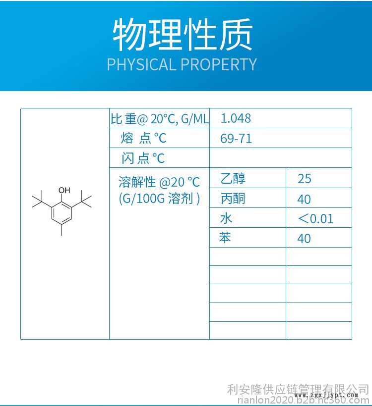 | 化學(xué)名稱 | 2,6-二叔丁基-4-甲基苯酚 | |||