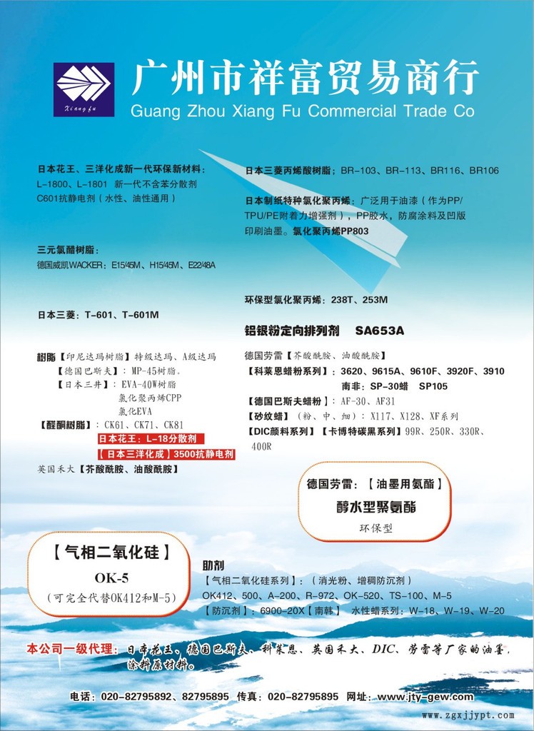 | 用途、使用范圍 | 水性油墨、水性涂料,地板上光蠟 |