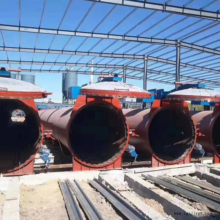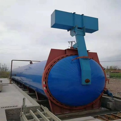 1、釜體裝置:主要由筒體和釜體法蘭焊接而成。釜體底部鋪設(shè)軌道,可行走或停放蒸養(yǎng)小車。釜體上布置各樣管座和接管,供進(jìn)排蒸汽、排放冷凝水和安裝各樣閥門儀表。