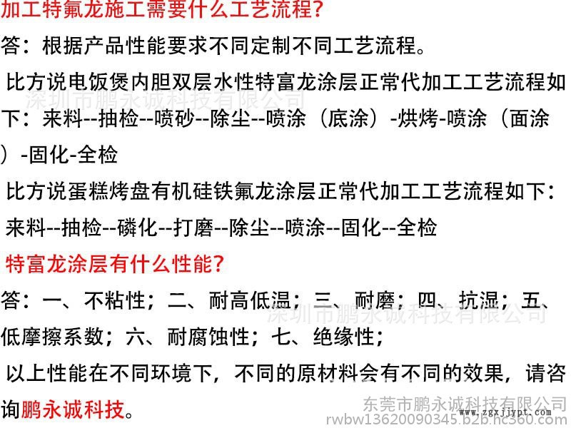 深圳市鵬永誠(chéng)科技有限公司成立于深圳市松崗鎮(zhèn),分公司位于東莞沙田鎮(zhèn) , **從事鐵氟龍(特富龍)噴涂的企業(yè)。10年經(jīng)驗(yàn)團(tuán)隊(duì),