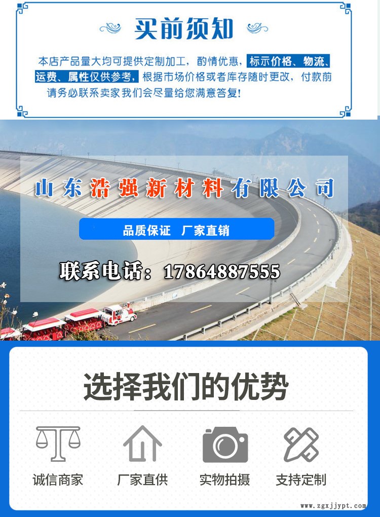 | 山東浩強新材料有限公司,公司位于泰山西麓的肥桃之鄉(xiāng)—山東省泰安-肥城市,東20公里緊靠京滬高鐵泰安站和京滬、京福高速公路,南臨孔子故里——曲阜,西80公里直達京九鐵路,北距濟南國際機場80公里,地理位置優(yōu)越,交通便捷,通訊發(fā)達。 山東浩強新材料有限公司是國內(nèi)較早專業(yè)從事土工材料及新型工程材料生產(chǎn)、研發(fā)的高科技民營企業(yè);是"中國土工合成材料工程協(xié)會"會員單位;公司占地60000平方米,固定資產(chǎn)1.8億元,年產(chǎn)土工合成材料及新型復(fù)合材料5000噸,年銷售收入2.2億元,利稅900萬元?,F(xiàn)有員工300余人,其中具有高中級以上職稱的專業(yè)技術(shù)人員50名,擁有德國卡爾邁耶(KARL MALIMO)高速"拉舍爾"經(jīng)編機、瑪里莫(MALIM0)多軸向織機、道尼爾織機,并掌握門澤爾公司涂層技術(shù)。公司自成立至今已有15年的發(fā)展歷程,現(xiàn)有各種土工格柵生產(chǎn)線13條,土工布和土工膜生產(chǎn)線5條,土工格室生產(chǎn)線2條,聚酯玻纖布生產(chǎn)線1條,防裂貼生產(chǎn)線2條,其他土工材料生產(chǎn)線3條,并提供產(chǎn)品進出口代加工服務(wù)(如:玄武巖纖維土工格柵)。 山東浩強新材料有限公司主要產(chǎn)品有:玻纖土工格柵(含自粘性玻璃纖維土工格柵)、滌綸經(jīng)編土工格柵、鋼塑復(fù)合土工格柵、PP塑料焊接土工格柵、雙向塑料拉伸土工格柵、單向塑料拉伸土工格柵、HPDE聚乙烯土工格柵、聚酯玻纖布、長絲土工布、短纖針刺土工布、透水養(yǎng)護土工布、復(fù)合土工膜、防水板、土工格室、防裂貼(抗裂貼)、三維植被網(wǎng)、無紡布、高強度土工網(wǎng)、工程纖維及多種新型復(fù)合材料。產(chǎn)品質(zhì)量已達到國際標準。其產(chǎn)品廣泛應(yīng)用于公路、鐵路、機械、水利、電力、航空、航天、軍事、化工、石油、水土保持及環(huán)境綠化與基礎(chǔ)設(shè)施建設(shè)領(lǐng)域,產(chǎn)品受到工程界專家及廣大用戶的一致好評,并受到國內(nèi)外有關(guān)專家的認同和贊譽。 山東浩強新材料有限公司始終堅持"誠信務(wù)實、服務(wù)社會"的經(jīng)營理念,愿與國內(nèi)、國際各界朋友真誠合作,共同為建設(shè)事業(yè)做出更大貢獻!攜手發(fā)展!共創(chuàng)美好明天! |