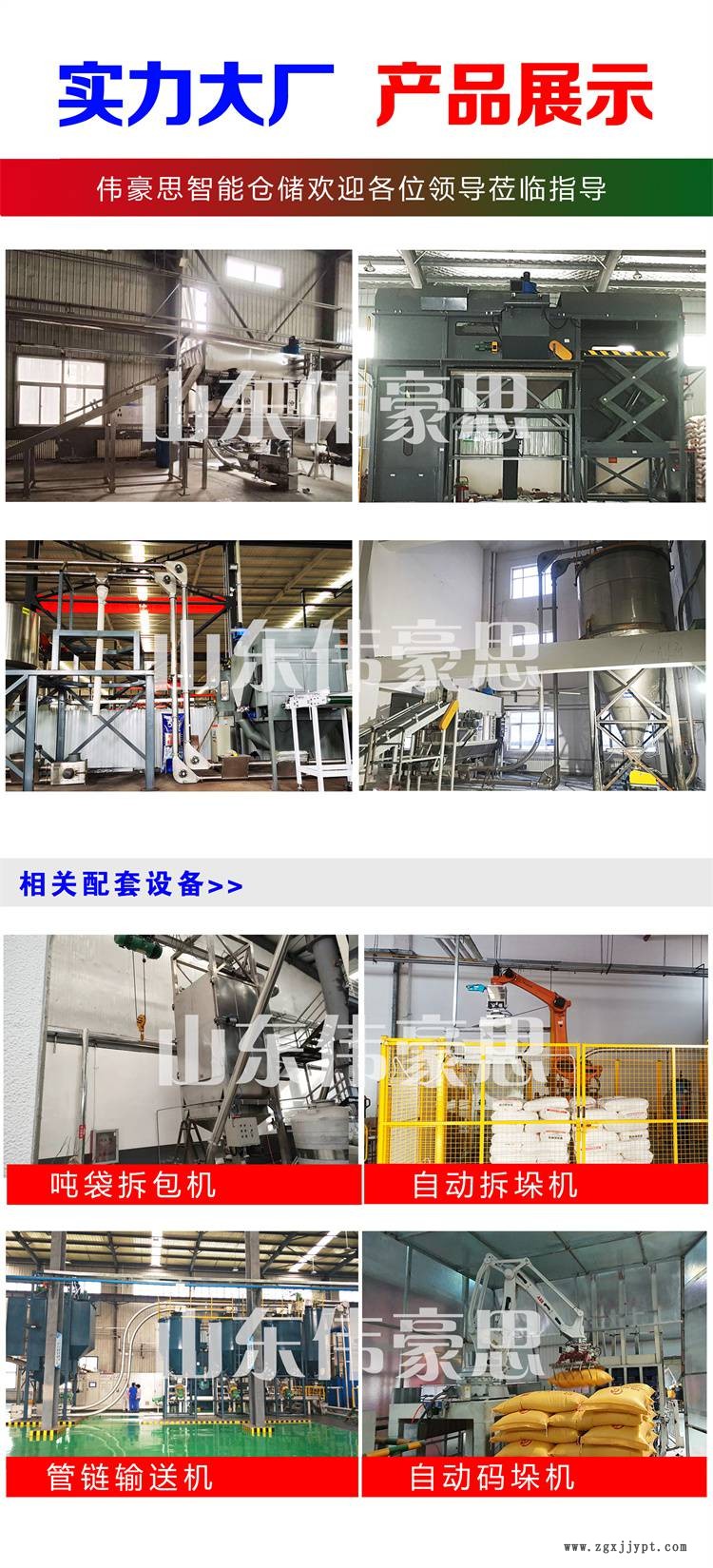 山東偉豪思智能倉(cāng)儲(chǔ)裝備有限公司產(chǎn)品包括全自動(dòng)包裝碼垛系統(tǒng),自動(dòng)拆垛拆包系統(tǒng),智能自動(dòng)裝卸車系統(tǒng)(平板車、高欄車、集裝箱等),智能拆垛高速裝車線、智能噸袋連續(xù)拆包機(jī)、智能中割式拆包機(jī)、移動(dòng)拆垛機(jī)器人、智能AGV小車、智能立體倉(cāng)庫(kù)、智能倉(cāng)儲(chǔ)物流裝備等;產(chǎn)品適應(yīng)于工廠、車間、倉(cāng)庫(kù)、貨場(chǎng)、車站、碼頭等,對(duì)行業(yè)所需產(chǎn)品提供設(shè)計(jì)、研發(fā)、生產(chǎn)、安裝調(diào)試、物聯(lián)一體服務(wù);應(yīng)用于電子電器、醫(yī)藥、化工、石油、煤炭、橡膠、塑料、糧食、食品等二十多個(gè)行業(yè),覆蓋一百多個(gè)物料品種??蔀榭蛻籼峁┱w的生產(chǎn)線解決方案和智能化工廠的改造方案等。
