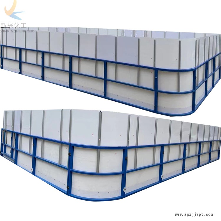 冰球場圍欄板的組成部分:PE板+框架,框架分為3種,1.噴漆鐵管框架,2、鋁管框架,3、鍍鋅管框架,才用的PE板具有重量輕、抗沖擊、耐磨損、耐腐蝕、抗紫外線、耐老化、摩擦系數(shù)小、 性、無污染、不易沾附異物、能吸收震動沖擊和防噪聲等優(yōu)良性能。