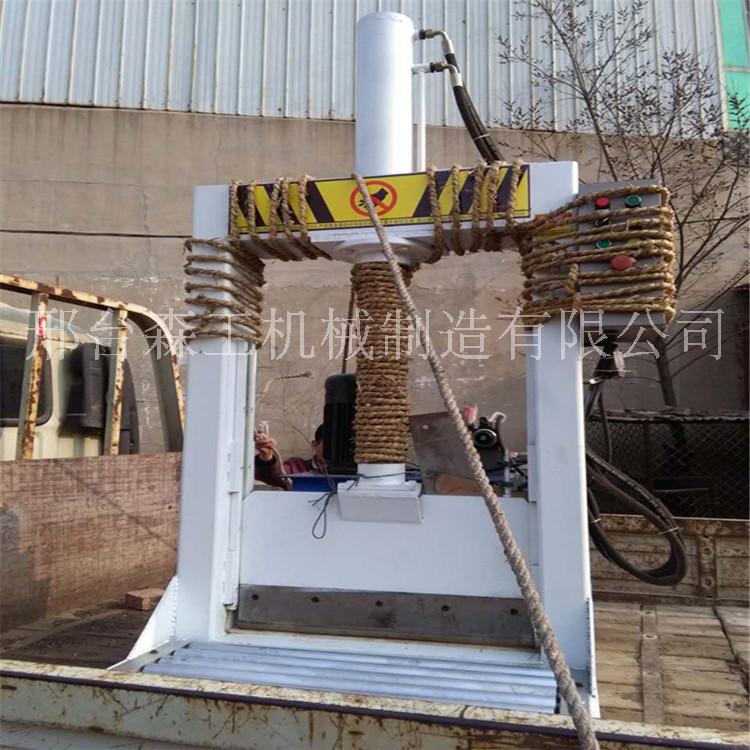 本機(jī)主要適用于切割天然橡膠、合成橡膠及其它塑性材料,尤其適合于安裝在密煉機(jī)旁,切割小塊膠料用。 本機(jī)主要有切膠刀、機(jī)架、工作油缸、底座、輔助工作臺(tái)及液壓系統(tǒng)、電氣系統(tǒng)等部分組成,切膠刀下面的底座上裝有尼龍墊板,以保護(hù)切膠刀的刀刃。 切生膠時(shí),用人工將膠料放在切膠刀的下方,然后按下啟動(dòng)按鈕,則切膠刀在活塞桿的帶動(dòng)下沿機(jī)架上的滑道落下將膠料切開。 機(jī)架上裝有上下兩個(gè)限位開關(guān),以控制換向閥改變切膠刀的運(yùn)動(dòng)方向,同時(shí),也可保護(hù)活塞缸缸蓋。