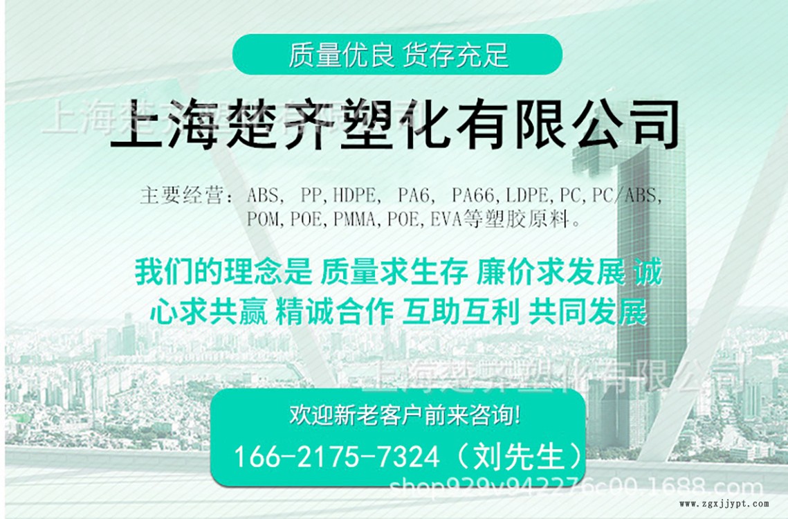 上海楚齊塑化有限公司 經(jīng)銷批發(fā)的塑膠原料、塑膠制品 消費(fèi)者市場,在消費(fèi)者當(dāng)中享有較高的地位,公司與多家零售商和代理商建立了長期穩(wěn)定的合作關(guān)系,上公司經(jīng)銷的塑膠原料、塑膠制品品種齊全、價(jià)格合理。公司實(shí)力雄厚,重信用、守合同、保證產(chǎn)品質(zhì)量,以多品種經(jīng)營特色和薄利多銷的原則,贏得了廣大客戶的信任。是研發(fā),生產(chǎn),貿(mào)易為一體專業(yè)塑膠企業(yè),有進(jìn)出口權(quán)限并與多家世界知名化工公司包括GE(沙伯基礎(chǔ)創(chuàng)新),杜邦,巴斯夫,出光,寶理,三菱等有著良好的合作關(guān)系.目前我們的客戶遍布:航空航天,電子電器,汽車,光電通訊,運(yùn)動(dòng)器材等多個(gè)行業(yè)。無論何時(shí)何地,如果您需要任何特殊材料或是對材料性能及加工有疑問,只需要一個(gè)電話我們訓(xùn)練有素,經(jīng)驗(yàn)豐富的工程師將隨時(shí)準(zhǔn)備為您服務(wù)。本公司長期供應(yīng):