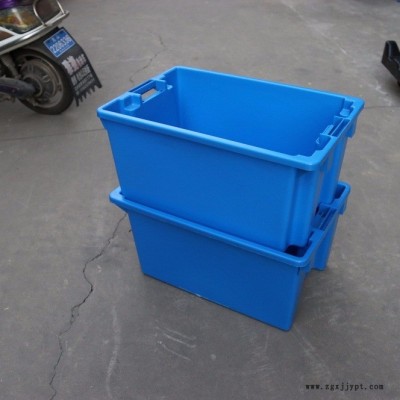 是本公司根據(jù)特殊用戶要求,突破常規(guī)塑料箱套迭理念,研發(fā)生產(chǎn)的物流箱體??障鋾r,則可反轉(zhuǎn)180度互相套迭,從而節(jié)約50的存儲空間,由于其兼具套、迭二種功能,因而使空箱返回時的空間占用體積低了一半,從而大大降低了運輸費用,達到降低往返使用成本的目的。
