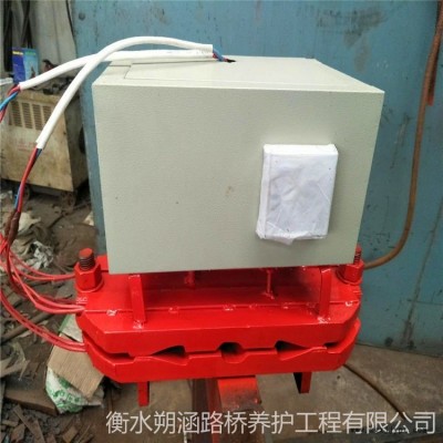 止水帶熱熔焊機(jī)是由模具和控制箱兩部分組成,模具內(nèi)設(shè)有與控制箱相連接的電熱元件,模具的界面形狀與被加熱元件相適應(yīng),模具的中間部位設(shè)有測(cè)溫設(shè)施,混煉膠片與止水帶接頭處的硫化膠材料相似,親和作用大,混煉膠片里的硫化劑擴(kuò)散至接頭界面,與硫化膠剩余的雙鍵發(fā)生交聯(lián)反應(yīng),形成共硫化體系,使接頭處連為一體,加壓硫化過(guò)程中需嚴(yán)格控制硫化溫度和硫化時(shí)間。