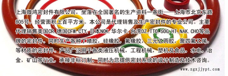 上海微鴻密封件有限公司,坐落在全國(guó)**的生產(chǎn)資料一條街——上海市北京東路,經(jīng)營(yíng)面積上百平方米。本公司是代理銷售及生產(chǎn)密封件的專業(yè)公司。主要代理銷售美國(guó)CR.德國(guó)CFW.CTY.日本NOK.華爾卡.臺(tái)灣DZ.TTO.SOG.等品牌的密封件。同時(shí)生產(chǎn)各種丁晴膠,硅橡膠,氟橡膠,三元乙丙膠,聚四氟乙烯,等材質(zhì)的密封件。產(chǎn)品廣泛用于各類液壓機(jī)械,工程機(jī)械,塑機(jī)及食品,水電,冶金,礦山等行業(yè),承接非標(biāo)訂制,同時(shí)為您提供密封系統(tǒng)的設(shè)計(jì)制造及技術(shù)咨詢。