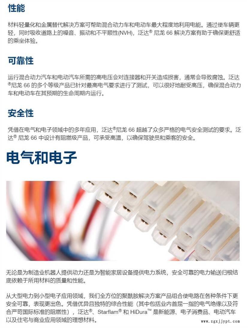 與未增強(qiáng)的PA66相比,玻璃纖維增強(qiáng)的Vydyne樹脂具有更高的熱變形溫度、抗蠕變和更好的尺寸穩(wěn)定性。這些產(chǎn)品對(duì)包括汽油、液壓油和大多數(shù)溶劑在內(nèi)的各種化學(xué)品具有良好的耐化學(xué)性。