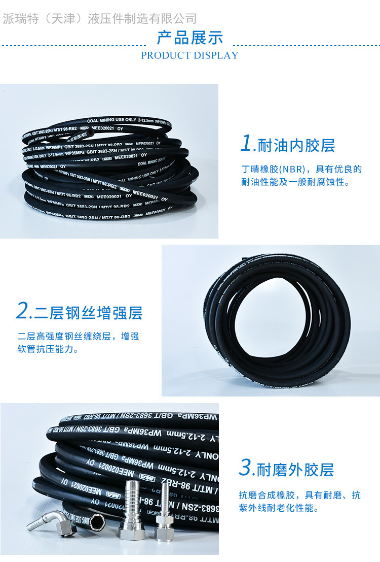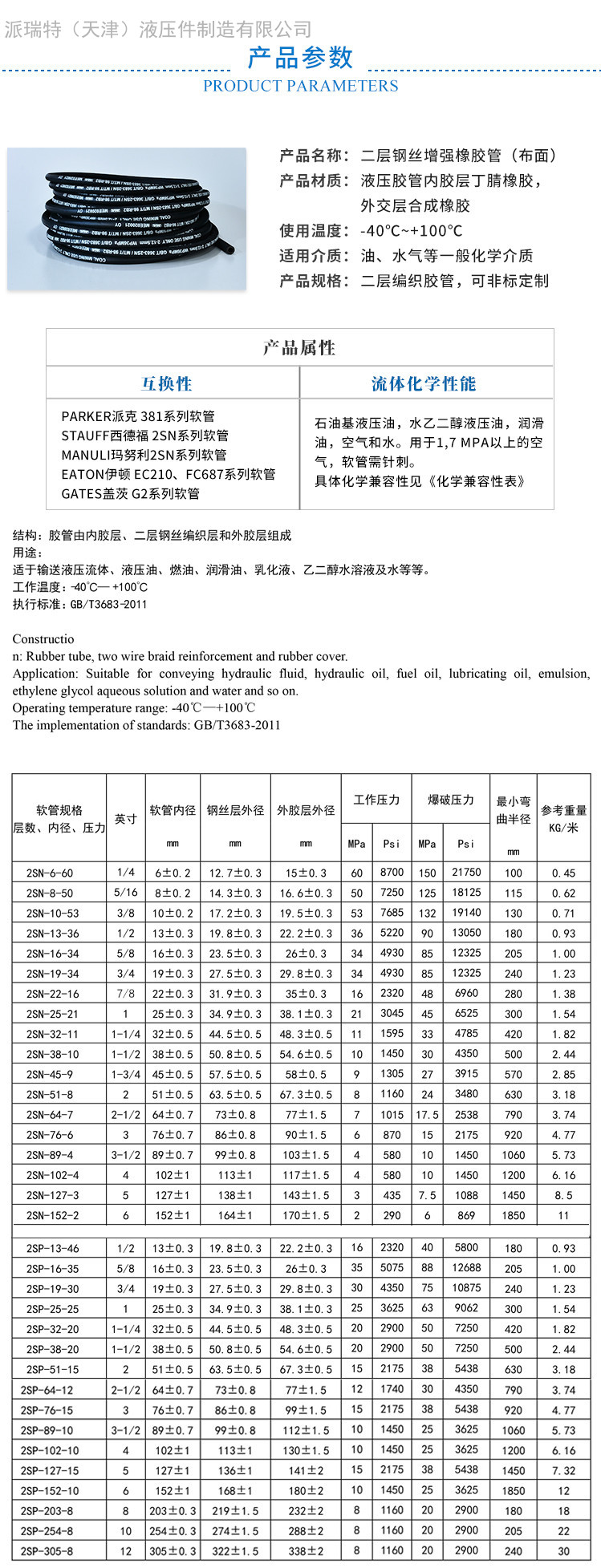 | 材質(zhì) | 1/2寸Φ13二層鋼絲纏繞46MPA,5/8寸Φ16二層鋼絲纏繞35MPA,3/4寸Φ19二層鋼絲纏繞30MPA,1寸Φ25二層鋼絲纏繞25MPA,11/4寸Φ32二層鋼絲纏繞20MPA,11/2寸Φ38二層鋼絲纏繞20MPA,2寸Φ51二層鋼絲纏繞15MPA,21/2寸Φ64二層鋼絲纏繞12MPA,3寸Φ76二層鋼絲纏繞15MPA,31/2寸Φ89二層鋼絲纏繞10MPA,4寸Φ102二層鋼絲纏繞10MPA,5寸Φ127二層鋼絲纏繞154MPA,6寸Φ152二層鋼絲纏繞10MPA,8寸Φ203二層鋼絲纏繞8MPA,10寸Φ254二層鋼絲纏繞8MPA,12寸Φ305二層鋼絲纏繞8MPA |