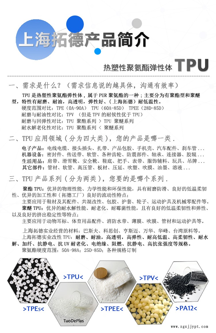 拓德提供TPU耐磨、增韌、耐寒、耐化學、耐候、高溫等彈性材料產(chǎn)品資料。
