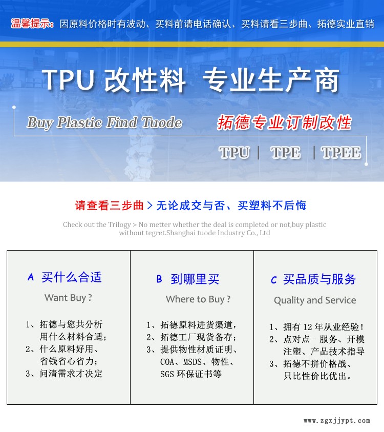 上海拓德實(shí)業(yè)是專業(yè)TPU、TPEE、TPE彈性體廠家,質(zhì)量有保障,價(jià)格優(yōu)惠。