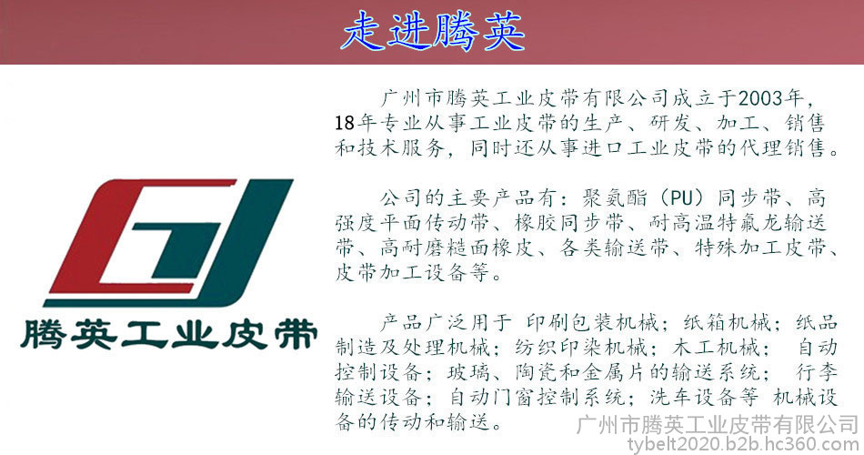 廣州騰英工業(yè)皮帶有限公司, 工業(yè)皮帶生產(chǎn)廠家(產(chǎn)品有橡膠同步帶、聚氨酯同步帶、片基帶、聚酯平帶、高強(qiáng)度平面?zhèn)鲃訋У龋?8年專注各種工業(yè)皮帶研發(fā)、生產(chǎn)、銷售,因?yàn)閷W?,所以更專業(yè)!騰英發(fā)展的18年來,培養(yǎng)了大批專業(yè)的技工人才,擁有專業(yè)的皮帶生產(chǎn)、加工團(tuán)隊(duì),同時還具有完善的售前售后服務(wù),是您值得信賴的合作伙伴!