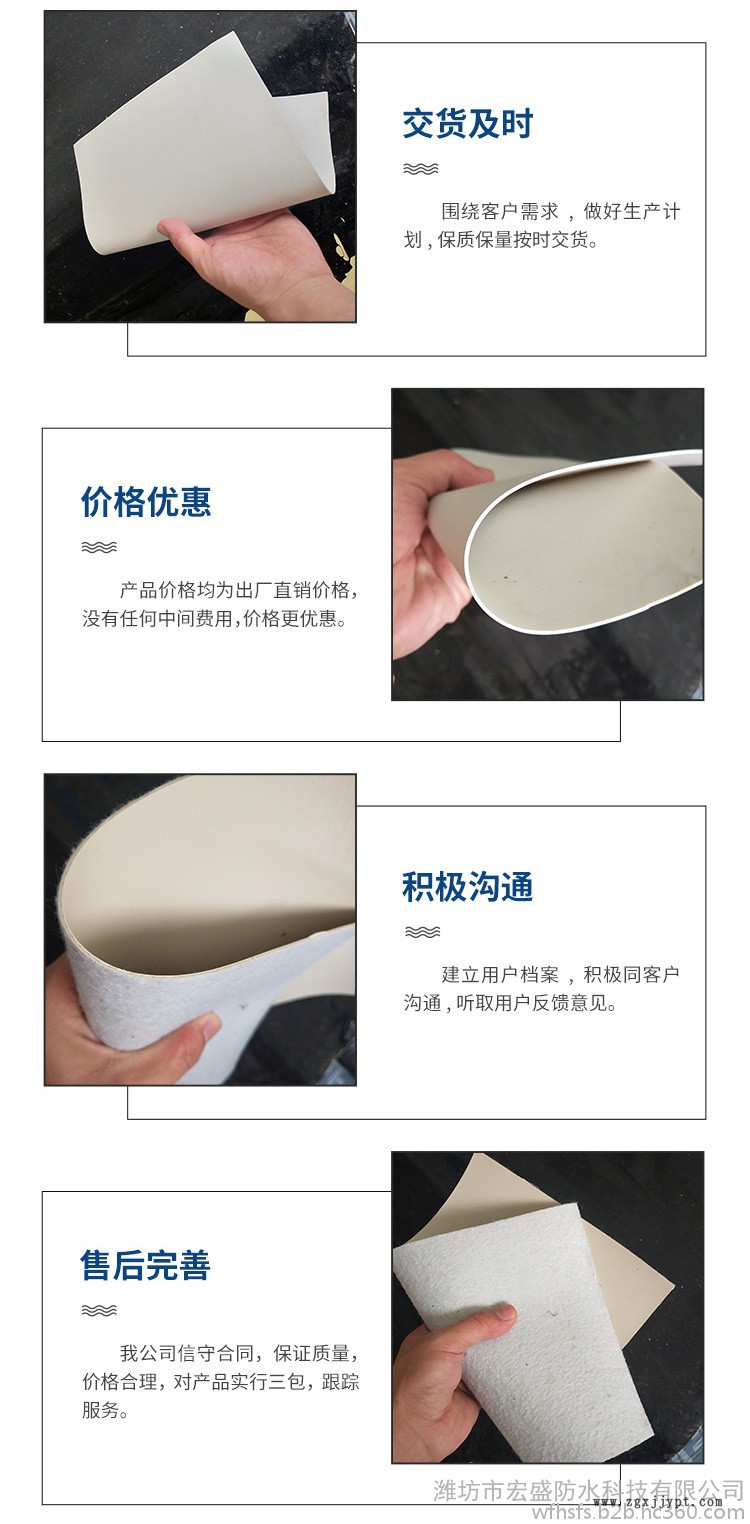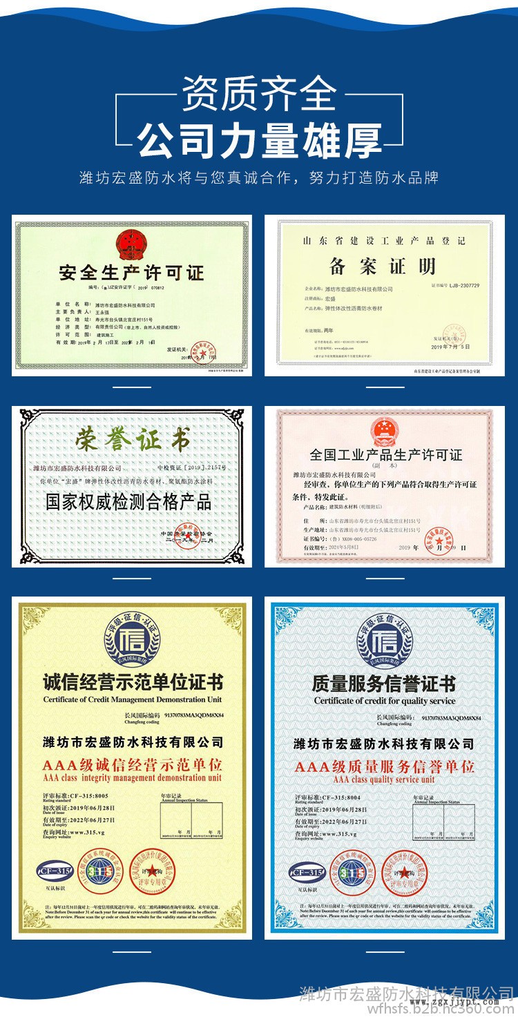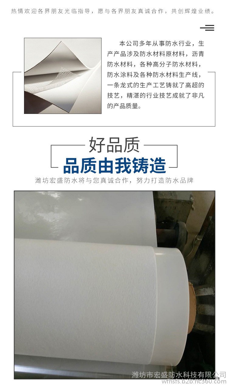 公司主要生產(chǎn)銷售彈性體/塑性體(SBS/APP)改性瀝青防水卷材、聚氯乙烯(PVC)防水卷材、高分子丙(滌)金屬胎耐根穿刺防水卷材、聚乙烯丙綸復(fù)合防水卷材、高分子HDPE非瀝青基自粘膠膜防水卷材、強力交叉膜自粘橡膠瀝青防水卷材、高分子EVA板自粘橡膠瀝青防水卷材、高分子丙(滌)綸自粘橡膠瀝青防水卷材、高分子鋁箔自粘橡膠瀝青防水卷材、聚氯乙烯(PVC)內(nèi)增強防水卷材、道橋用聚合物改性瀝青防水卷材、TPO防水卷材、氯化聚乙烯防水卷材、高分子三元乙丙橡膠防水卷材,EVA防水板等產(chǎn)品,聚氨酯防水涂料、高鐵專用聚氨酯防水涂料、JS防水涂料、高分子丙烯酸防水涂料、聚合物水泥基型JS防水涂料、水泥基滲透結(jié)晶防水涂料等等。產(chǎn)品規(guī)格齊全,性能穩(wěn)定。廣泛應(yīng)用于各類民用建筑、地鐵、隧道、水利環(huán)保工程、垃圾掩埋場、化工、冶金等多個領(lǐng)域的防水防滲、防腐工程。是集生產(chǎn)、科研、施工、銷售于一體的專業(yè)化企業(yè)。