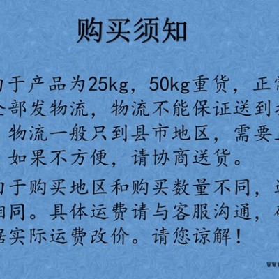 采用復合紙袋包裝,凈重50kg/袋,保質期3個月。需儲存于干燥通風的室內,包裝袋密封,注意防潮防凍。