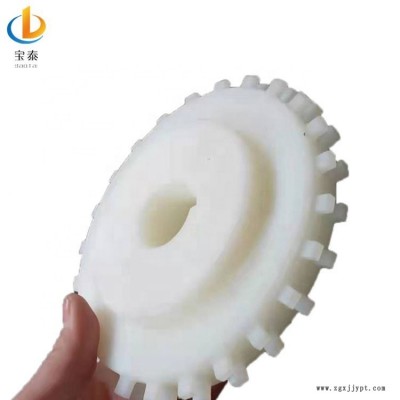 尼龍具有良好的綜合性能,包括力學性能、耐熱性、耐磨損性、耐化學藥品性和自潤滑性,且摩擦系數(shù)低,有一定的阻燃性,易于加工,適于用玻璃纖維和其它填料填充增強改性,提高性能和擴大應用范圍,其次其過載保護功能,當扭矩過大,齒輪本身損壞,動力傳動中斷從而保護下級裝置或人身安全,減少損失。