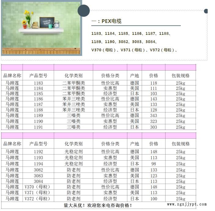 匯聚馬蹄蓮、巴斯夫**、氰特、、、等眾多國(guó)內(nèi)外30多個(gè)**品牌、 50多個(gè)品種、2000多個(gè)型號(hào)的一站式采購(gòu)平臺(tái),幫助用戶實(shí)現(xiàn)“抗氧劑、紫外線吸收劑、增白劑一站式采購(gòu)”。