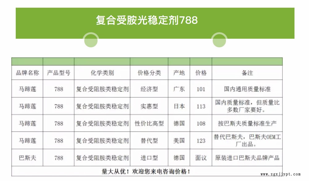 匯聚馬蹄蓮、巴斯夫**、氰特、、、等眾多國內(nèi)外30多個**品牌、 50多個品種、2000多個型號的一站式采購平臺,幫助用戶實現(xiàn)“抗氧劑、紫外線吸收劑、增白劑一站式采購”。