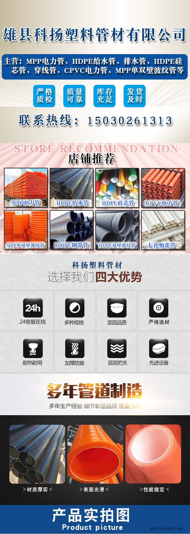 MPP電力管施工工藝和操作:MPP電力管施工工程屬于獨立的單體群,暗藏燈透光膜裝飾吊頂,每一個暗藏燈箱得由施工方吊裝完成,包括內裝燈管,安裝完成封口用張拉膜。為了裝飾效果,燈箱框架的深度盡可能不少于200mm,框內刷白。各裝飾接點施工,需要和施工方共同協(xié)商完成。清理及日常維護安裝完畢后,用干凈毛巾把MPP電力管清潔干凈,本身具有防靜電功能,所以其表面是不會沾染塵埃,護理只需定期用清水輕潔。如有人為弄臟,如油煙、污水漬,可以用一般中性清潔劑清洗,再用毛巾抹干即可。如不慎沾染油漆,可使用汽油清洗后用清水潔凈即可。