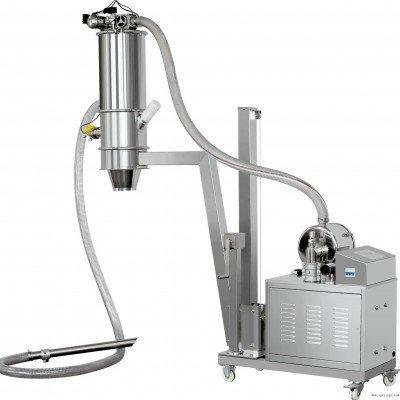 真空上料機是利用壓縮空氣通過真空發(fā)生器產(chǎn)生高真空實現(xiàn)對物料的輸送,不需要機械式真空泵,具有結(jié)構(gòu)簡單、體積小、免維修、噪音低、控制方便、消除物料靜電和符合GMP要求等優(yōu)點。真空發(fā)生器產(chǎn)生的高真空,使被輸送的物料杜絕了分層現(xiàn)象,保證了混合物料成分的均一性,是壓片機、膠囊填充機、干法制粒機、包裝機、粉碎機、振動篩等機械自動上料的設備,減輕了工人的勞動強度,解決了加料時粉塵外溢等問題,是制藥廠、食品廠通過GMP認證、促進清潔、文明生產(chǎn)的設備。